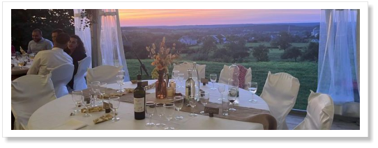 À l'heure du repas, la salle des Carrosses, fraîche et lumineuse, vous accueillera. Elle se prête à tous les événements : mariages, séminaires, réunions, fêtes de famille.